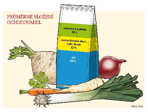 Spotřebitelský časopis dTest porovnal složení 18 univerzálních ochucujících přípravků se sušenou zeleninou. Zjistil, že v průměru obsahují téměř 60 procent soli, ale jen 20 procent zeleniny.